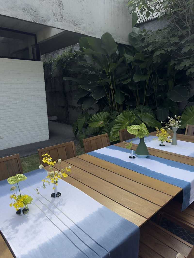 Caminho de mesa tie dye azul e branco