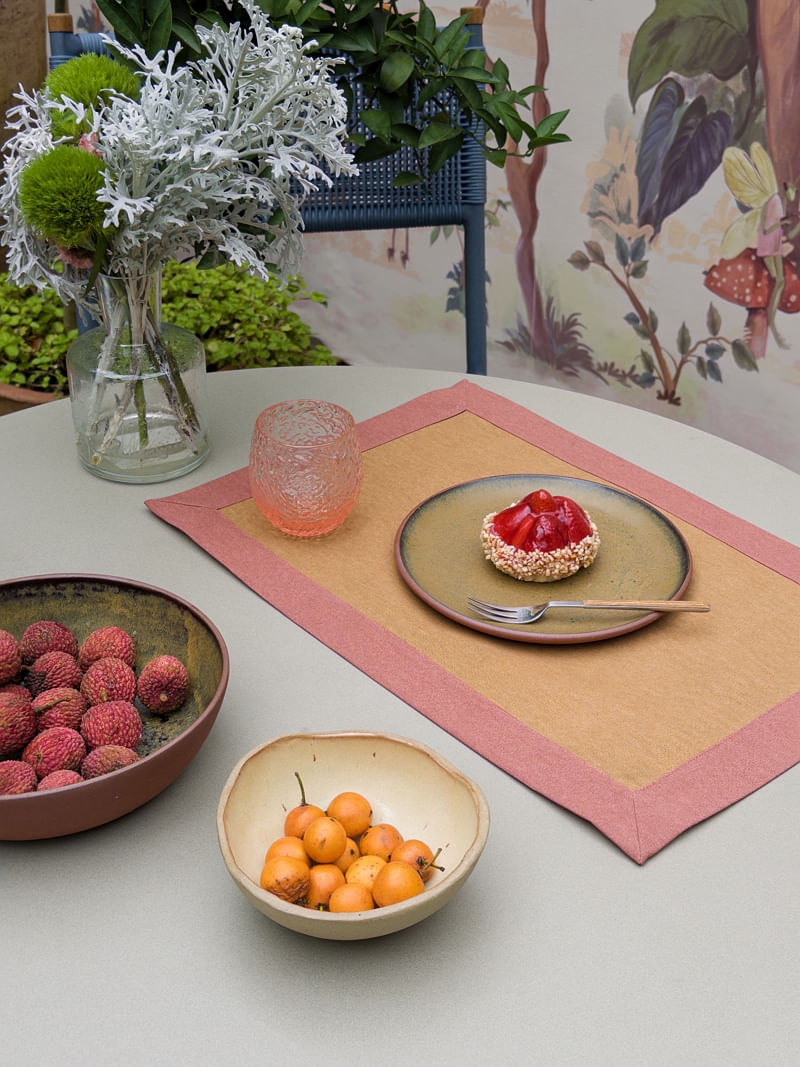 Jogo Americano Recortes impermeável caqui e vermelho